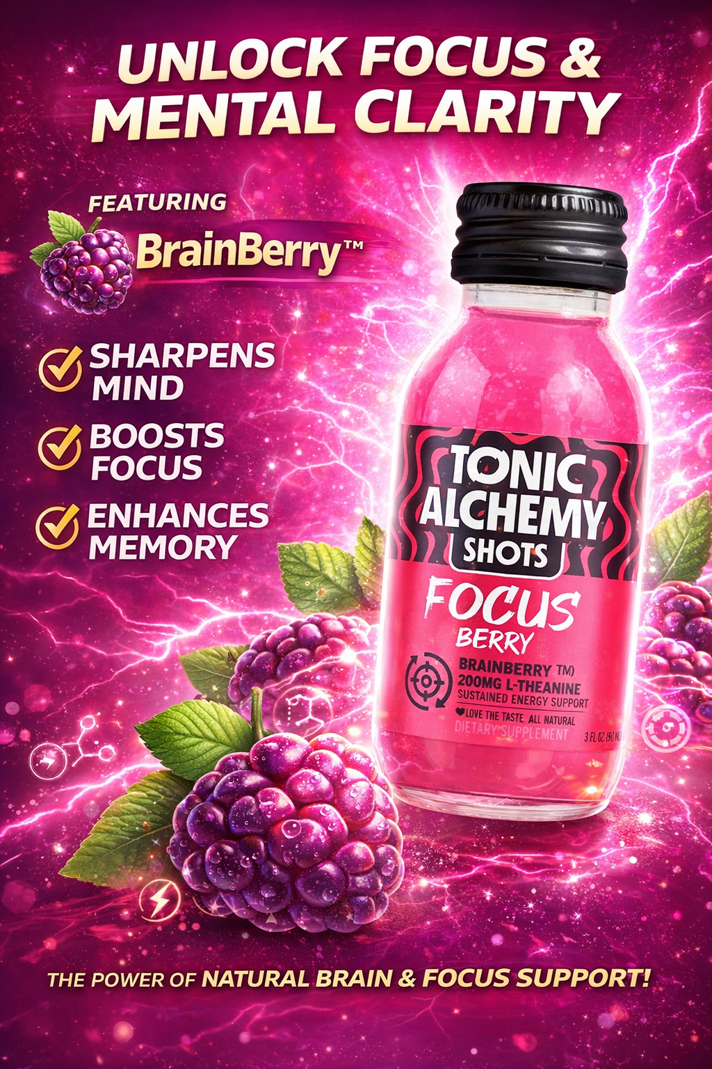 Powered by Brainberry® and 200mg L-Theanine, FOCUS is designed to support attention, mental clarity and sustained cognitive performance — without overstimulation.